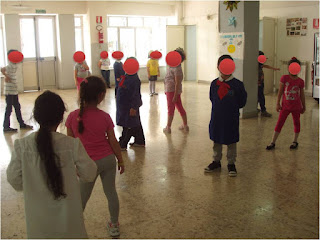 1. Un macrogruppo è impegnato con la maestra Maria in un'aula, un altro gruppo è con me fuori nell'atrio.